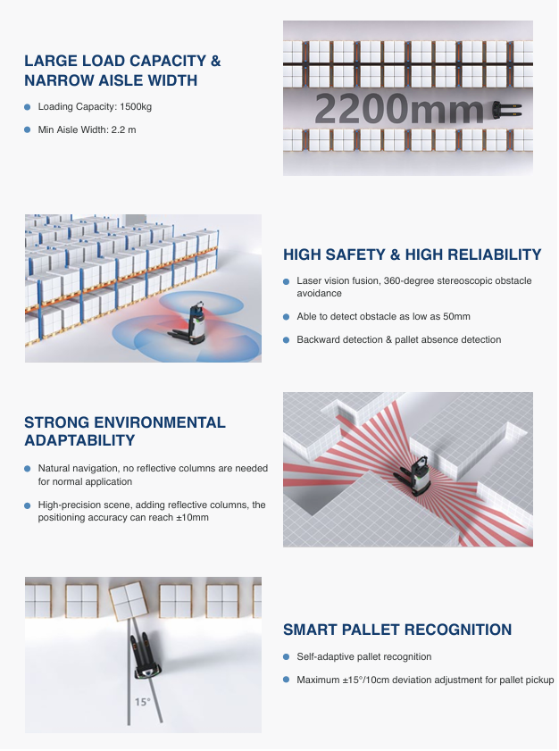 F150A CE เป็นรถยกแบบ AMR ขนาดกะทัดรัด รองรับน้ำหนักได้สูงสุด 1,500 กก.